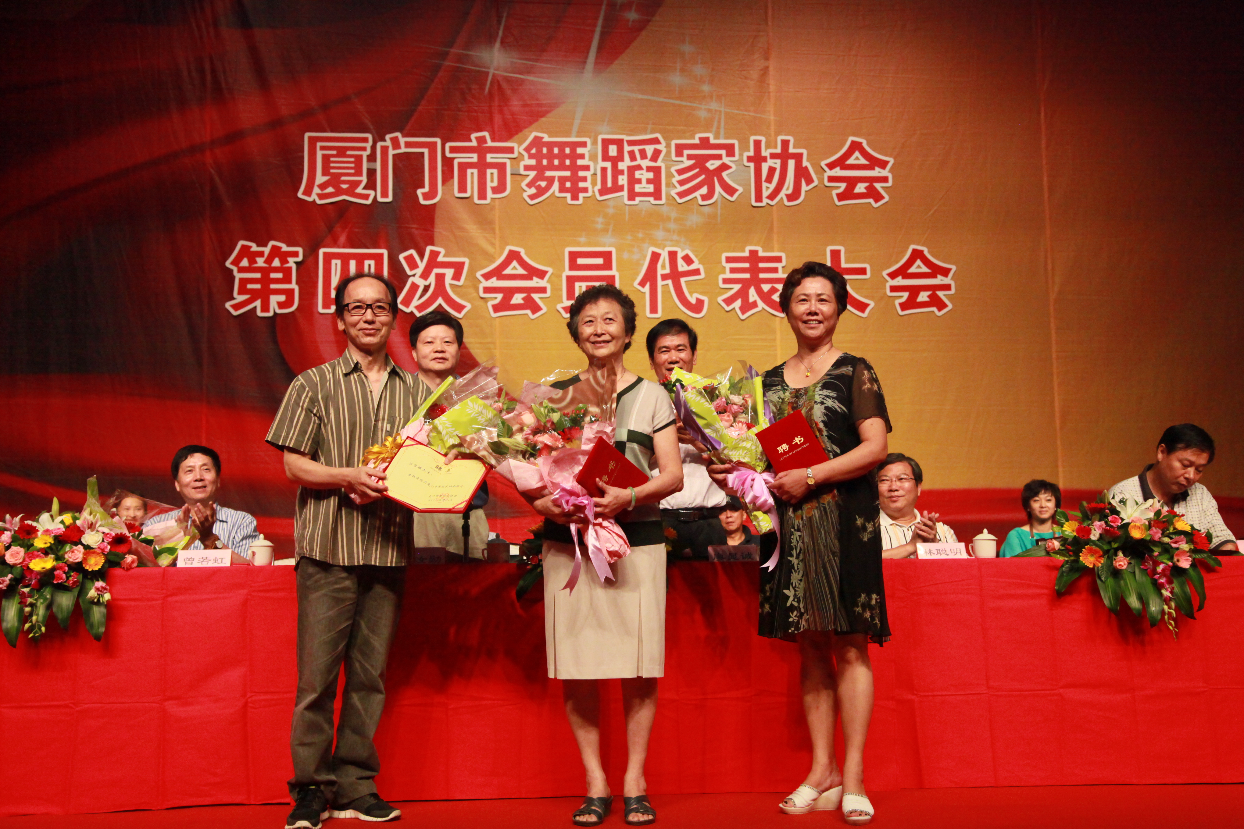 2012年8月4日,厦门市舞蹈家协会第四次会员代表大会在厦门小白鹭艺术中心金荣剧场隆重举行。市委宣传部林聪明副部长、市文联党组成员、林汝勋副主席、市文广新局廖晁诚副局长、市民间组织管理局石好荣局长、市文联党组成员、秘书长陈影出席会议。出席会议的还有厦门市各文艺家协会主要负责人以及市文广新局等相关部门、处室的负责同志、市舞协第三届主席团成员、顾问、理事以及来自全市各个舞蹈专业及教学、培训岗位的各位舞蹈家和舞蹈工作者共211人。