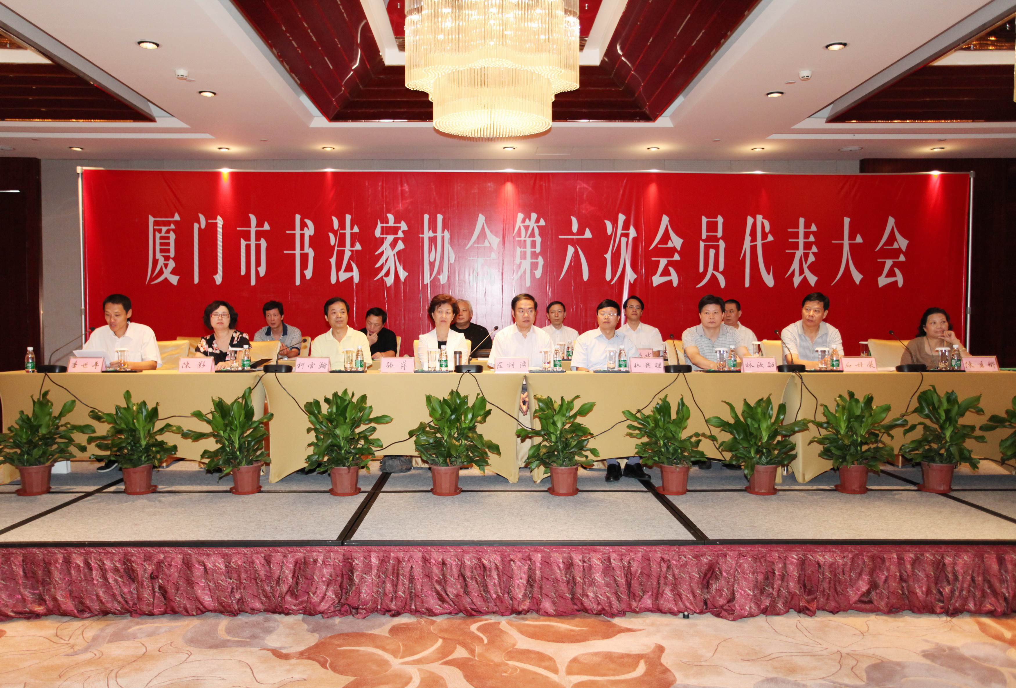 8月12日上午,厦门市书法家协会第六届会员代表大会在源昌凯宾斯基大酒店举行。101余名书法工作者代表参加会议,大会选举产生了市书协会第六届理事会和主席团成员,刘堆来当选为新一届主席,王元、王文吉、朱子辉、李世平、李诗斌、蔡劲松、谢荣仁、陈胜凯8人当选为副主席。