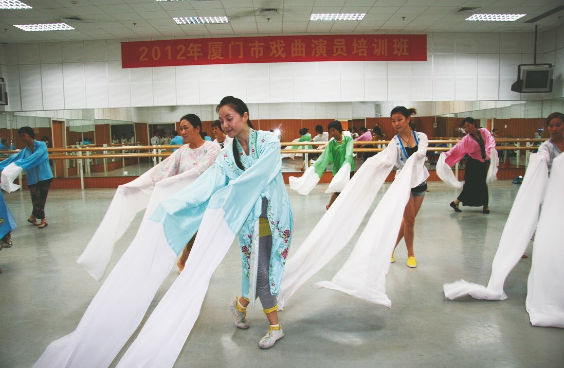 据了解,此次培训的内容,涵盖歌仔戏、高甲戏、越剧和京剧等,市剧协常务理事苏燕蓉亲自执教。就如何充分运用肢体语言来展示人物的内心世界,表现人物的“喜、怒、哀、乐”,苏老师十分耐心为学员逐一讲解并示范;学员们认真摹仿高难度的水袖组合、用心体会戏剧水袖的丰富内涵。培训过程,紧张有序,气氛热烈、精彩迭出。市文联党组成员、秘书长陈影,市剧协主席曾学文、秘书长梁薇亲临培训班关心指导。