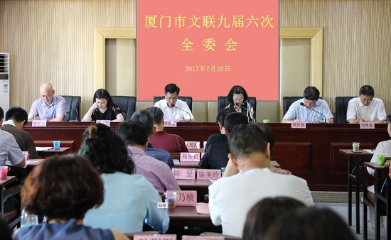 7月25日,厦门市文联召开九届六次全委会,会议的主要任务是,深入学习领会省委常委、市委书记裴金佳同志到文联调研和座谈会的讲话精神,研究部署贯彻落实的具体措施。市文联主席舒婷主持会议。市文联第九届主席团成员和委员、代表出席会议。
