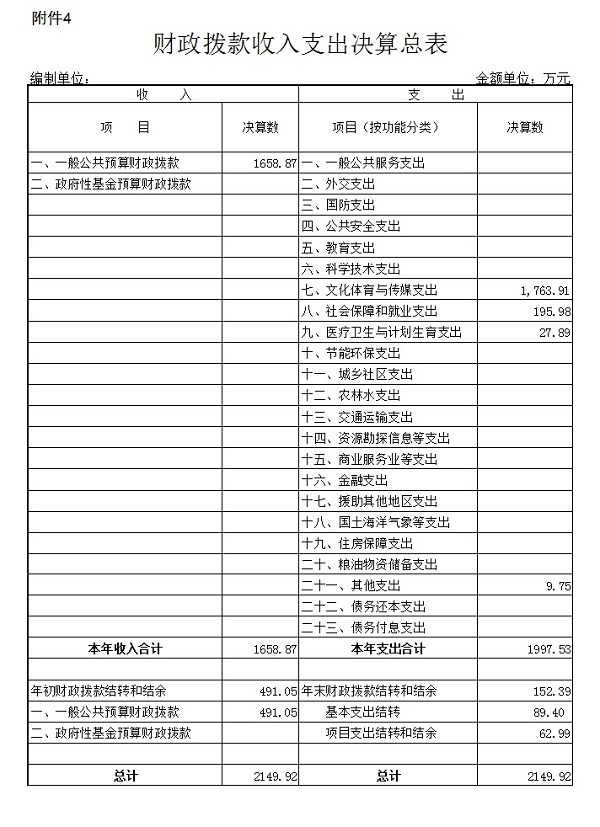 4. 财政拨款收入支出决算总表