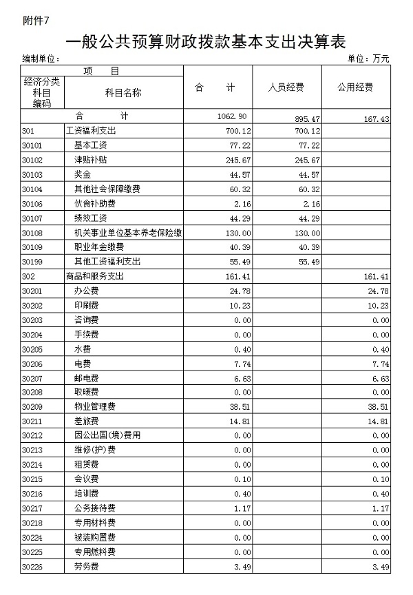 7.一般公共预算财政拨款基本支出决算表