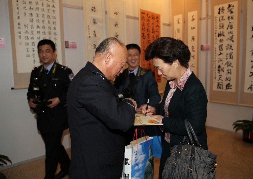 市公安文联成立大会结束后,副市长、公安局长王小洪宣布第三届“警营文化周”开幕,全体代表和嘉宾观摩了我局民警创作的书画、摄影、集邮优秀作品展。(公安文联)