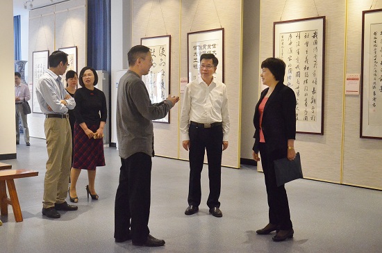 陈紫宣参观了“不忘初心 牢记使命——学习党的十九大精神书法作品展”。市人大常委会教科文卫委主任委员李虹陪同调研。