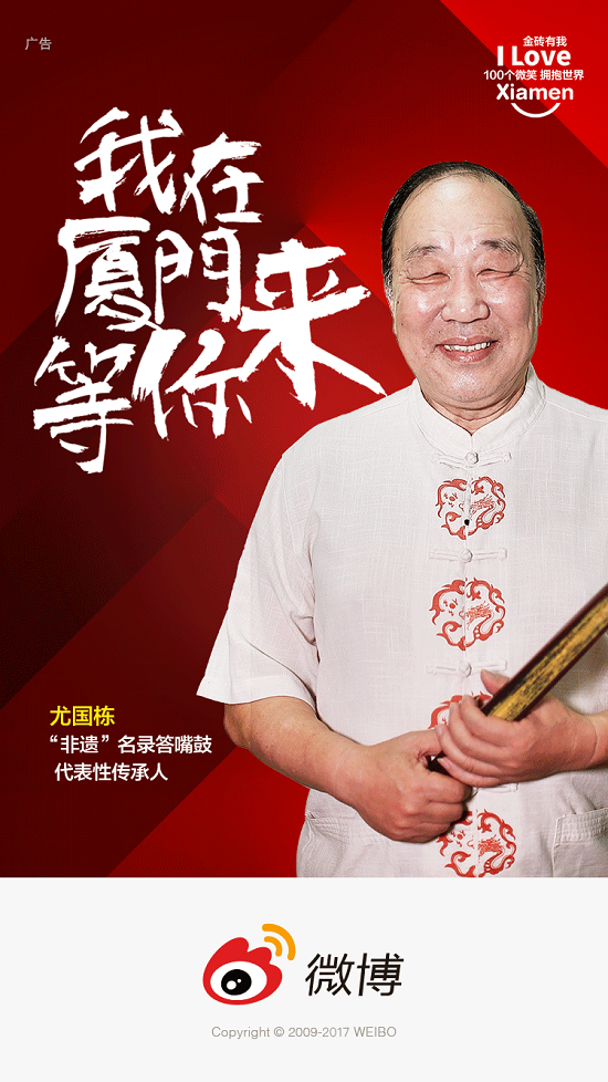 活动以100个在厦门工作生活、深爱着厦门的“厦门人”,用一句共同的话语,向世界发出热情的邀请——“我在厦门等你来!”通过新浪网专题、视频故事、微博开机海报等形式用微笑为魅力厦门代言