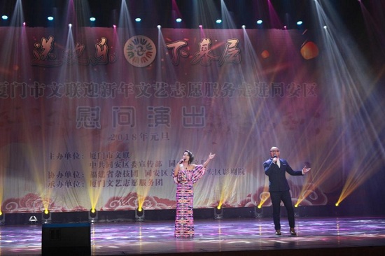 2018年1月1日,厦门文艺志愿服务团来到素有“海滨邹鲁之地、声名文物之邦”的厦门市同安区,开展“送欢乐·下基层” 2018厦门市文联迎新年文艺志愿服务走进同安区慰问演出活动。