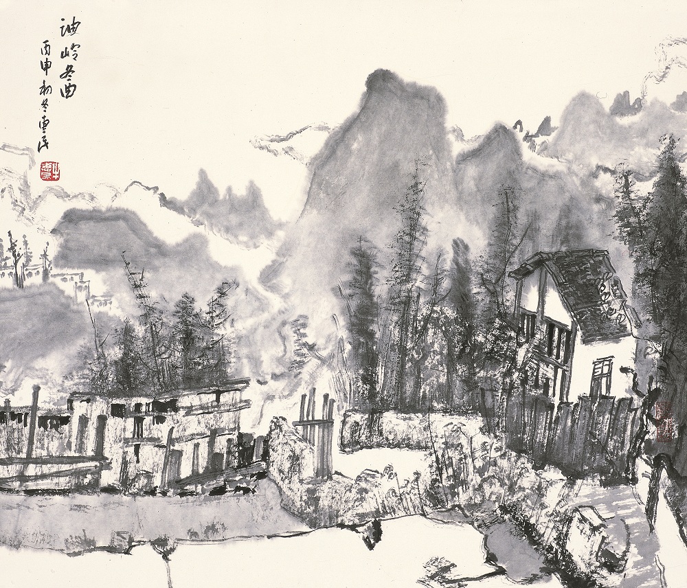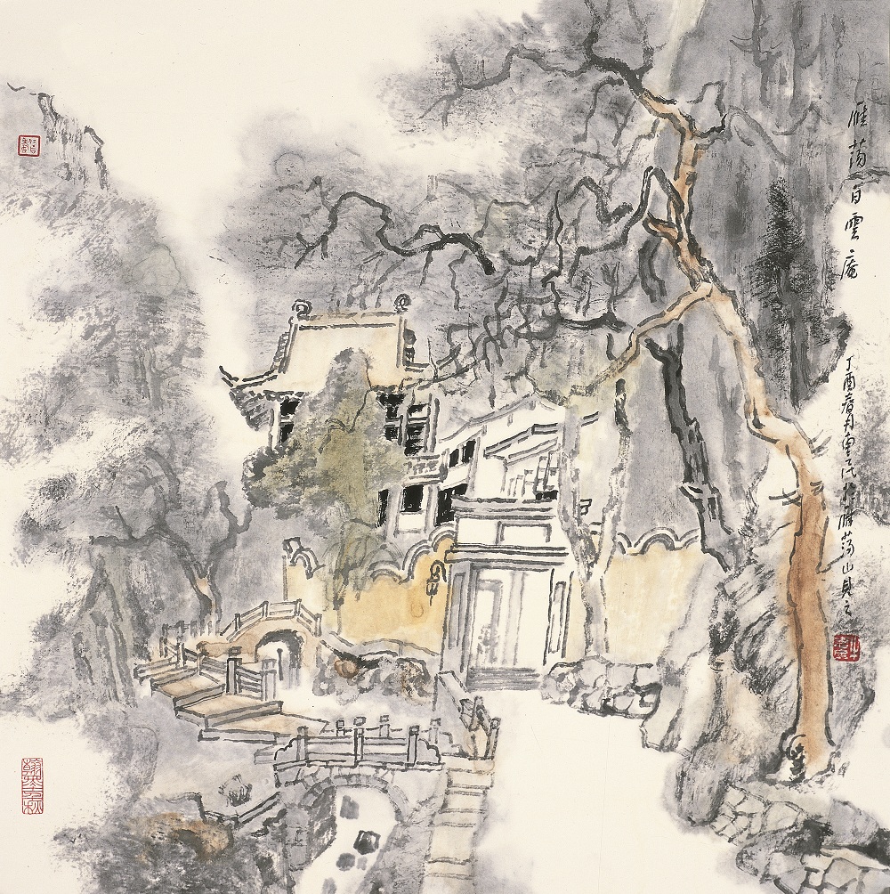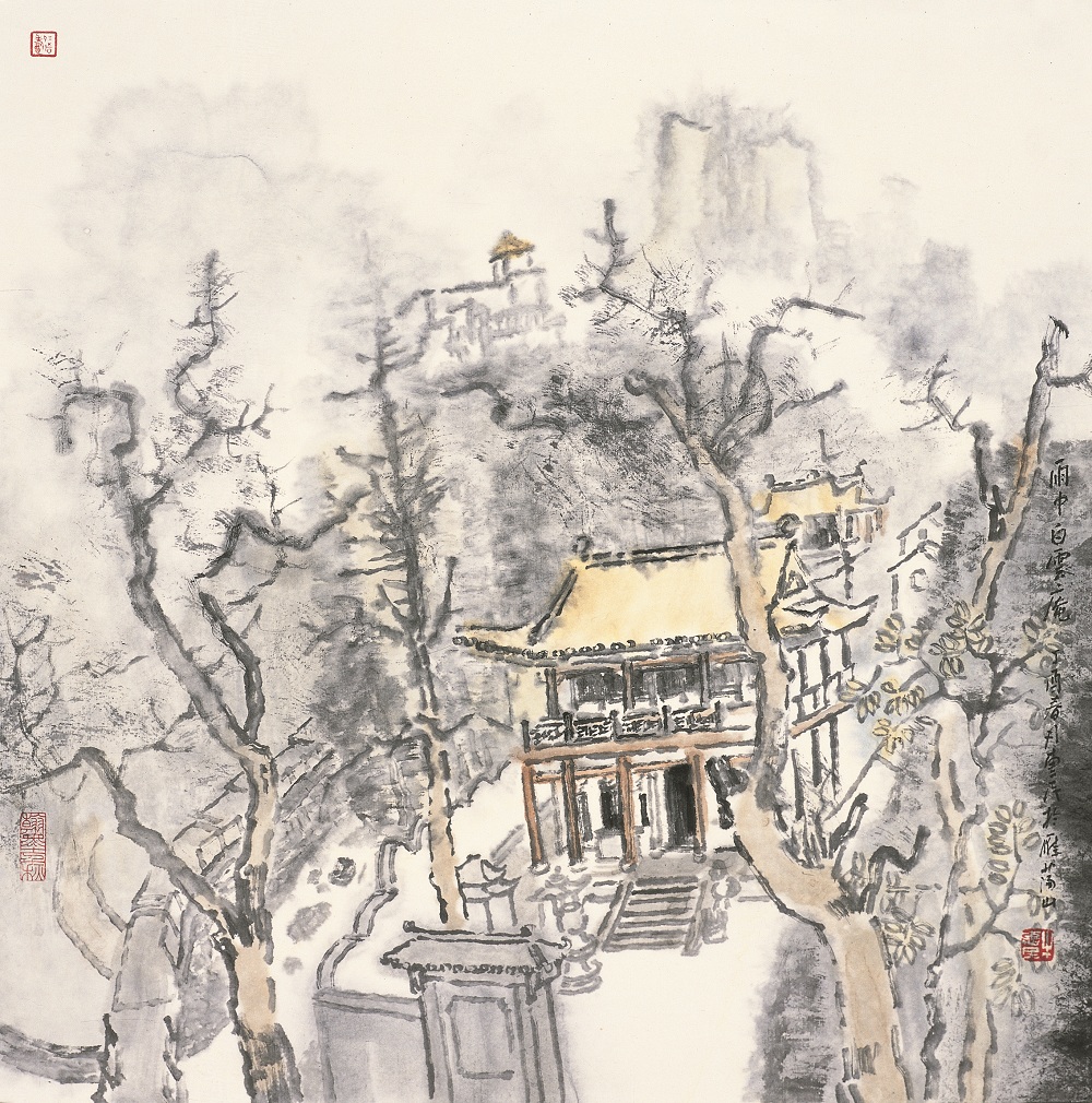 雨中白云庵 50cm×50cm