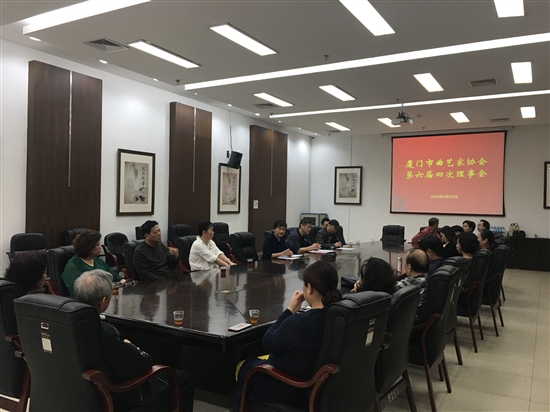 2018年4月18日上午,厦门市曲艺家协会第六届四次理事会在厦门市文化馆二楼会议室召开。会议由市曲协副主席宋永贤主持,市曲协主席陈娟、副主席兼秘书长王鹭海、副主席王秀怡及市曲协理事等40多人参会。