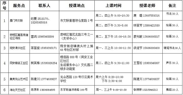 为深入学习贯彻落实习近平新时代中国特色社会主义思想,创新文艺惠民的形式和手段,满足我市青少年暑期文化需求,厦门市文联拟于暑期在所属6个文联服务点举办青少年书法、美术、音乐、舞蹈等艺术门类的公益文艺培训,提升我市青少年文艺素养,丰富暑期生活,培养文艺新苗。
