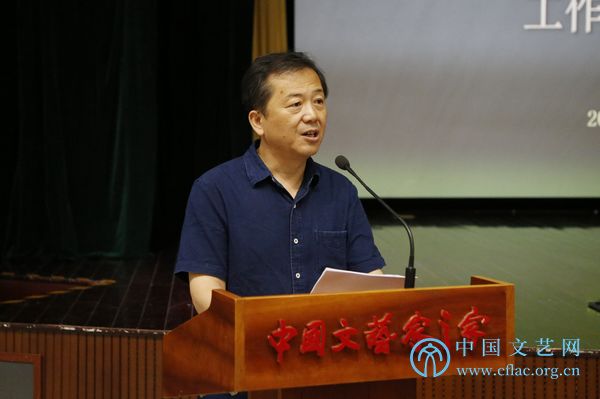 8月24日,中国文联信息化建设工作领导小组工作会议暨“互联网+协会”工作推进会在中国文艺家之家召开。图为中国文联党组成员、书记处书记陈建文作中国文联网信建设及“互联网+协会”工作情况通报。中国文艺网 高晴摄