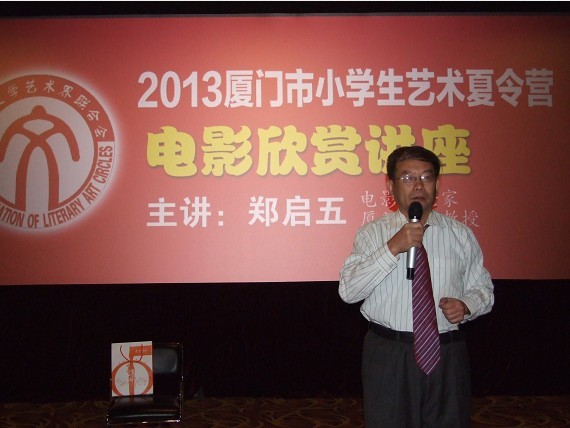 高甲戏“非遗”传承人陈炳聪的戏曲欣赏讲座为夏令营开了个精彩的好头。随后,厦门音乐广播的少儿节目《风铃丁当》主持人叶红以及厦门广播电视报的首席记者林晓影分别为小营员们介绍了新闻采编播方面的常识和娱乐追星的趣闻。厦门大学郑启五教授激情四溢的电影欣赏讲座更是紧紧地抓住了孩子们的心,热烈的互动,让郑老师备受孩子喜爱,被孩子们追着签名合影的场面把夏令营活动推向高潮。