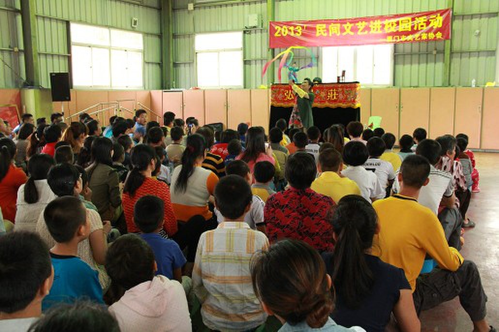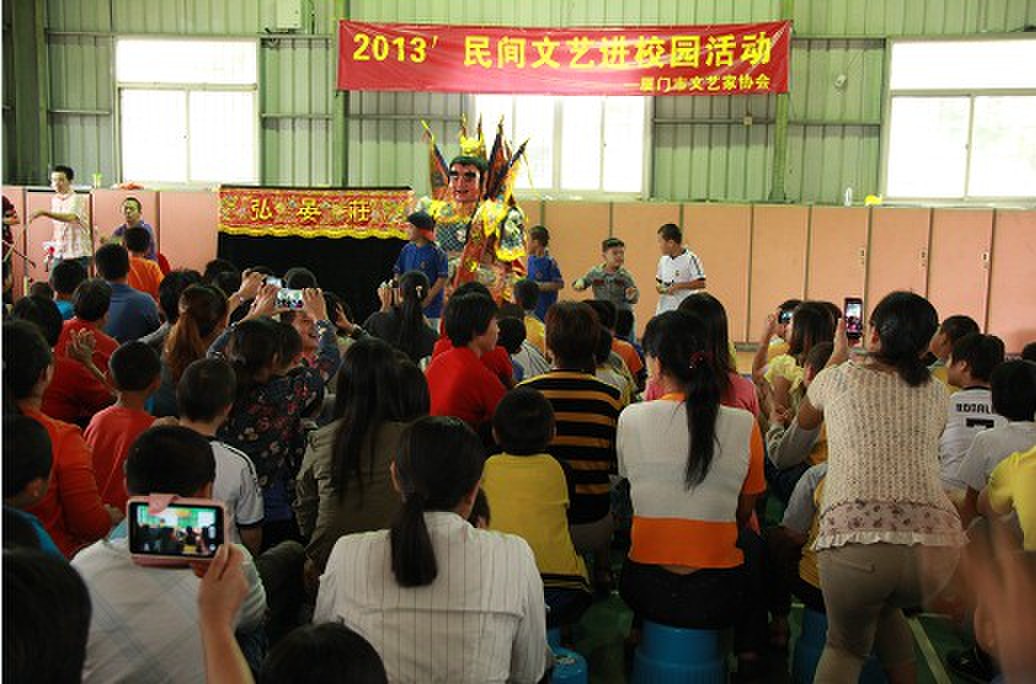 厦门市民间文艺家协会的惠民文艺活动《民间文艺进校园》来到了同安特殊教育学校,带去了木偶戏,猴王变脸,电音三太子等精彩的节目,让同学们在快乐中感受民间艺术 .