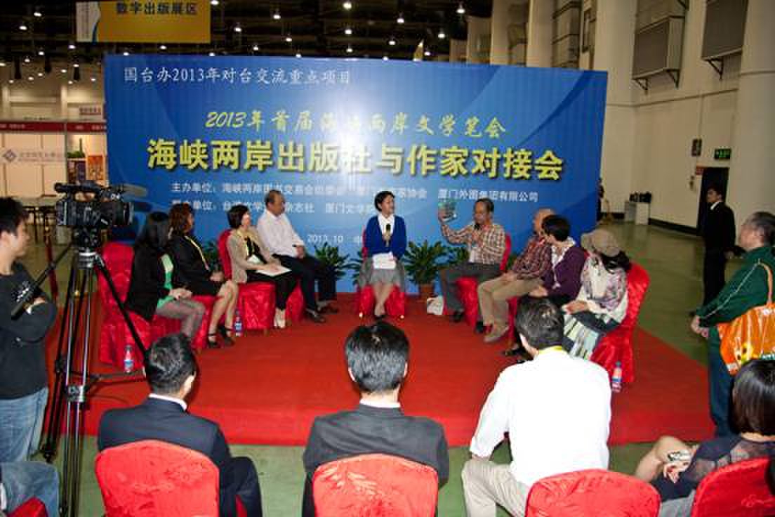 由厦门市作协主办的“2013年首届海峡两岸文学笔会”10月 26日上午在厦门国际会展中心盛大开幕。本次笔会是2013年国台办对台交流重点项目,第九届海峡图书交易会的配套活动。活动由“女性写作与绿色生活”主题论坛、两岸文学成果交流会和海峡两岸青少年阅读视频大赛三大部分组成。大陆著名作家徐小斌、蒋韵、饶雪漫、春树,台湾地区著名作家陈若曦、章缘、张曼娟等出席。笔会持续至10月30日结束,期间还举办了参会作家的公益讲座、签名售书等活动。各省作家机构派出代表与两岸出版机构面对面,商谈创作选题和版权贸易等事宜。这次笔会以“文化传承、活动创新”为目标,成功增进了两岸经贸、文化交流,弘扬了闽台民俗文化,增进了海峡两岸人民友谊。