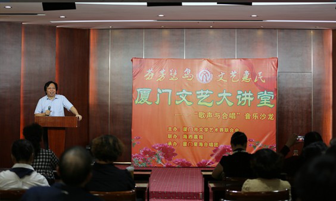 厦门市文联党组书记、常务副主席林起在开场式讲话中介绍,文艺大讲堂将以群众喜闻乐见的专题讲座、现场辅导、表演示范、交流互动等形式,推向社区基层、村头巷尾以及军营和企事业单位,真正实现“文艺为民、文艺乐民”。讲坛内容包括文艺各门类基础知识、技能技法、欣赏品鉴、理论评论、文艺掌故、文艺生活等。主讲人以厦门文艺家为主,适当邀请全省和全国知名文艺家。