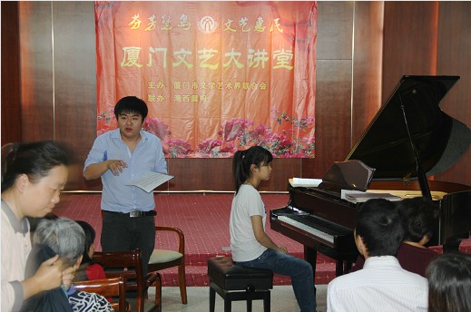 “厦门文艺大讲堂”的开讲,受到社会各界文艺爱好者的热烈欢迎,参与者踊跃,大家纷纷表示:通过“厦门文艺大讲堂”,可以学到更多专业的各门类文艺知识,满足大家越来越高的艺术技能和欣赏水平,是市文联为广大人民群众提供的丰富的文化大餐。