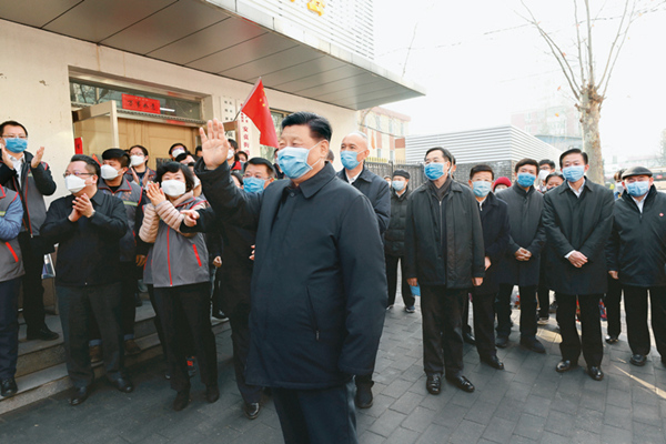 从年初一到现在,疫情防控是我最关注的问题,我时刻跟踪着疫情蔓延形势和防控工作进展情况,不断作出口头指示和批示。党中央印发了《关于加强党的领导、为打赢疫情防控阻击战提供坚强政治保证的通知》。中央应对疫情工作领导小组多次开会研究部署疫情防控工作,前方指导组也积极开展工作。国务院联防联控机制加强协调调度,及时协调解决防控工作中遇到的紧迫问题。有关部门各司其职,军队积极支援地方疫情防控。各地区成立了党政主要负责同志挂帅的领导小组,启动了重大突发公共卫生事件I级响应。各党政军群机关和企事业单位紧急行动、全力奋战,广大医务人员无私奉献、英勇奋战,广大人民群众众志成城、团结奋战,打响了疫情防控的人民战争,打响了疫情防控的总体战,全国形成了全面动员、全面部署、全面加强疫情防控工作的局面。在党中央集中统一领导下,在各方面共同努力下,防控工作正有力开展,社会各界和国际舆论反映总体是好的。我在会见世界卫生组织总干事谭德塞时,谭德塞表示,中方行动速度之快、规模之大,世所罕见,这是中国的制度优势,有关经验值得其他国家借鉴,相信中国采取的措施将有效控制并最终战胜疫情。