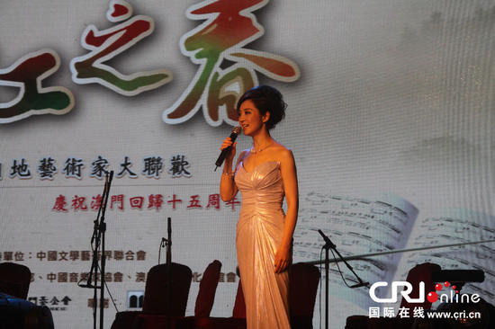 中国著名女高音歌唱家李谷一演唱的《我和我的祖国》引起现场的热烈气氛。而中国著名男高音歌唱家刘秉义、唐彪及著名女高音歌唱家殷秀梅的表演也是精彩不断。今年适逢澳门回归祖国十五周年,前来出席“濠江之春”活动的中国文联党组书记赵实女士表示,15年来两地艺术家交流合作成果显著:“15年来,澳门艺术家积极参与祖国文化建设,在内地舞台绽放光彩。澳门在内地的展演活动络绎不绝,精彩纷呈,成功塑造了‘文化澳门’的形象。15年来,澳门与内地交流合作日益密切,内地最具代表性的戏剧、音乐、影视、美术、书法、摄影等作品也已经走进澳门。两地艺术家有了众多同台献艺、切磋创新的机会,共同提升了当代中华文化的凝聚力和影响力。”