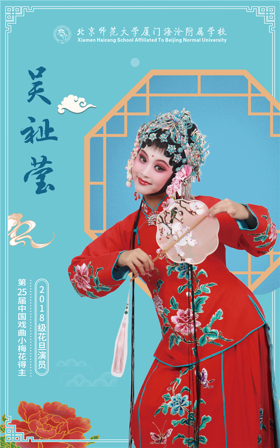 由中国戏剧家协会和举办地人民政府共同主办,中国文联戏剧艺术中心和举办地相关文化机构共同承办,各省、自治区、直辖市戏剧家协会(以下简称“省级剧协”)以及其他支持单位共同协办2021年中国第二十五届少儿戏曲最高奖项“小梅花”评选结果近日公示,北京师范大学厦门海沧附属学校三年级学生吴祉莹获得小梅花金奖,这是北京师范大学厦门海沧附属学校自2016年开展戏曲传承教育以来收获的第4朵中国少儿戏曲小梅花金牌,也是厦门市戏曲进校园工作开展多年所取得的喜人成效!