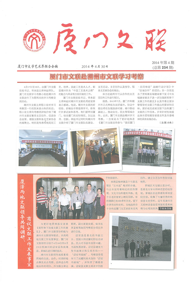 4月17日至18日,由厦门市文联党组书记、常务副主席林起带队,厦门市文联学习考察小组赴潮州市文联进行了为期两天的学习考察交流活动。