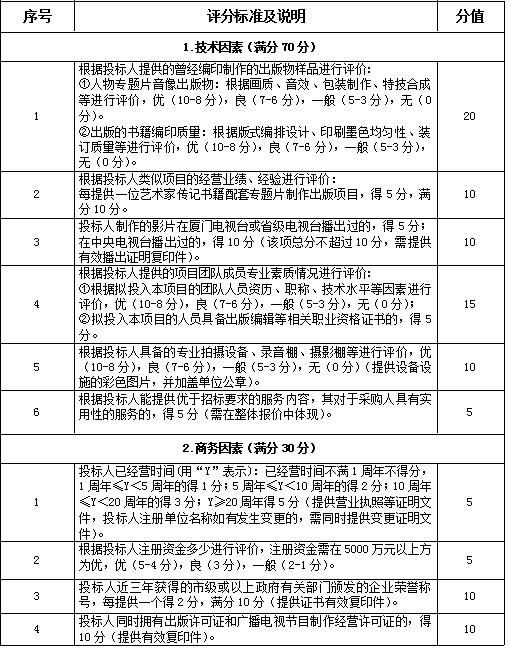 五、评标标准 依照以下标准进行评分,满分100分,得分最高者则为中标人: