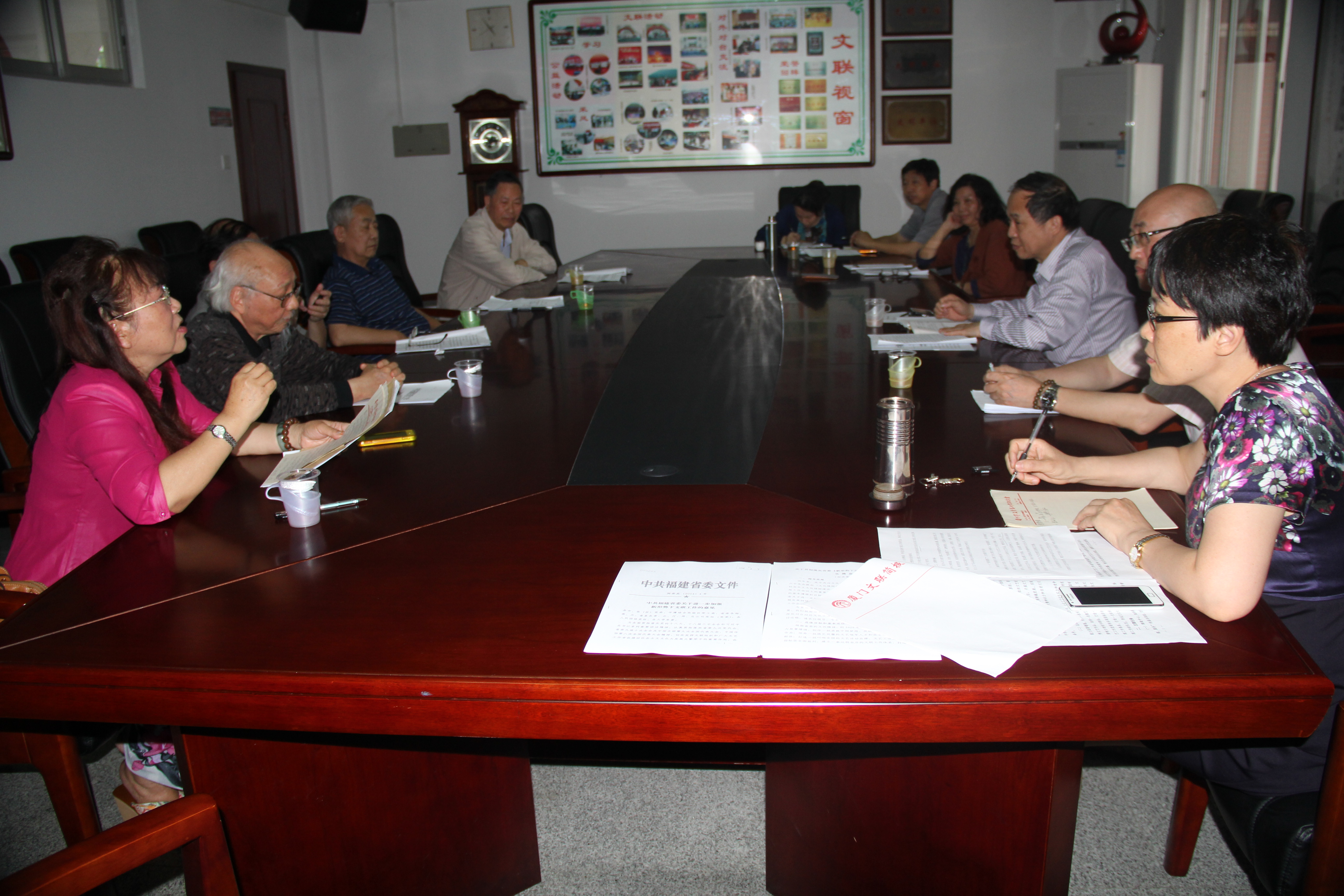 今年2月,福建省委下发《中共福建省委关于进一步加强新形势下文联工作的意见》,是指导我省文联长期发展持续加强的纲领性文件。市文联在第一时间组织全体干部职工、各文艺家协会负责人、各区各行业文联负责人和退休老同学学习文件精神。并成立贯彻落实福建省委《关于进一步加强新形势下文联工作的意见》实施意见课题组和文件起草工作组,由文联党组书记、常务副主席林起任组长,党组成员林汝勋、陈影、夏爱新任工作组成员,文联主席舒婷任名誉组长。市文联调研员赖妙宽和文联党组秘书、厦门文学院办公室主任朱鹭琦参与起草工作。