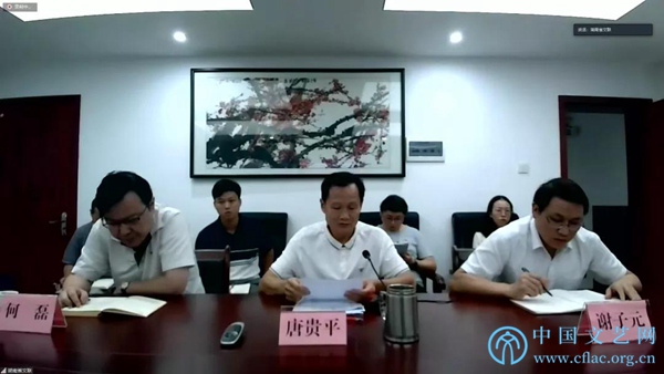 9月28日,全国文联系统新文艺群体职称评审工作推进会在京举行。图为湖南省文联党组成员、副主席唐贵平通过“文艺云·在线视频会议培训系统”做经验交流。