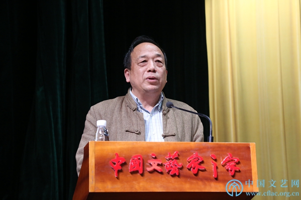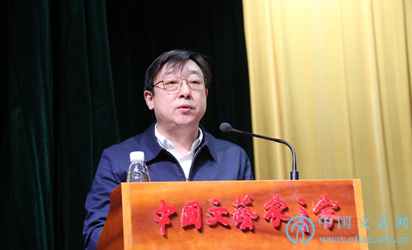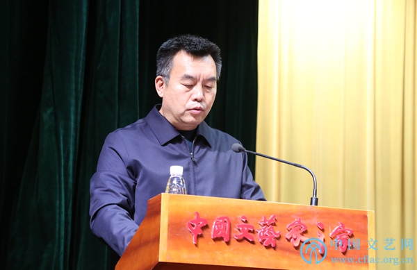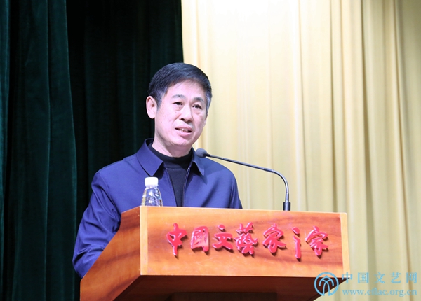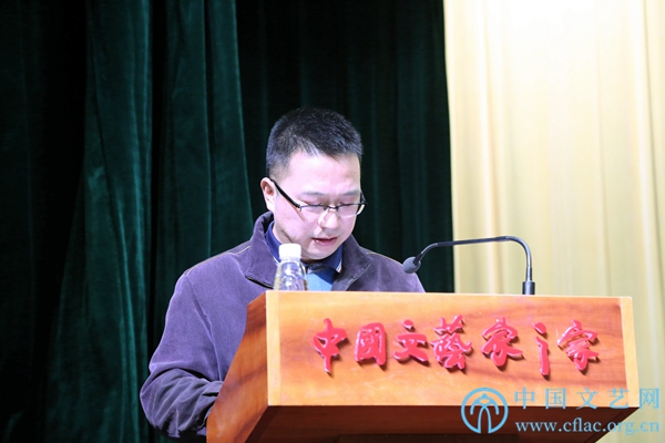 12月29日,中国文联第十一次全国代表大会总结会在中国文艺家之家四层报告厅举行。图为文代会文件宣传组副组长、中国文联理论研究室主任周由强发言。