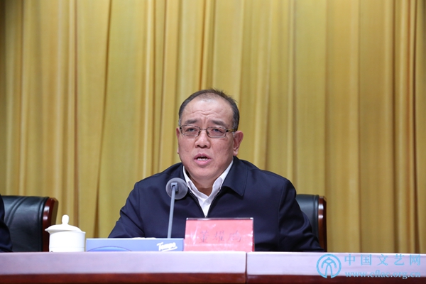 12月29日,中国文联第十一次全国代表大会总结会在中国文艺家之家四层报告厅举行。图为中国文联党组成员、副主席董耀鹏主持会议。