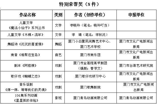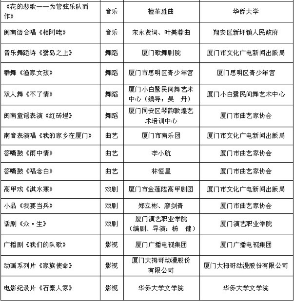 附:第五届厦门文学艺术奖拟获奖作品名单