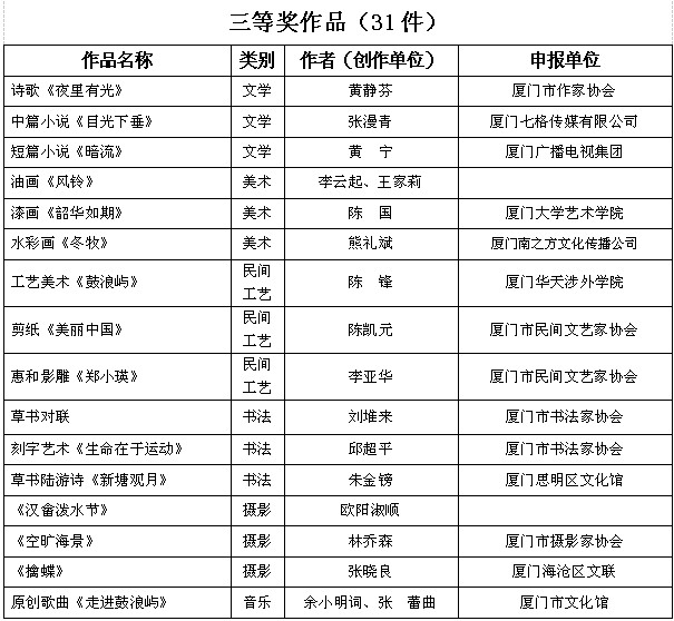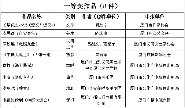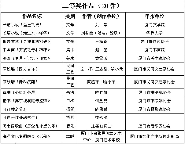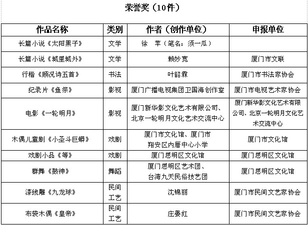 为充分体现公开、公平、公正的原则,广泛听取社会各方面意见,现将第五届厦门文学艺术奖拟获奖作品予以公示。