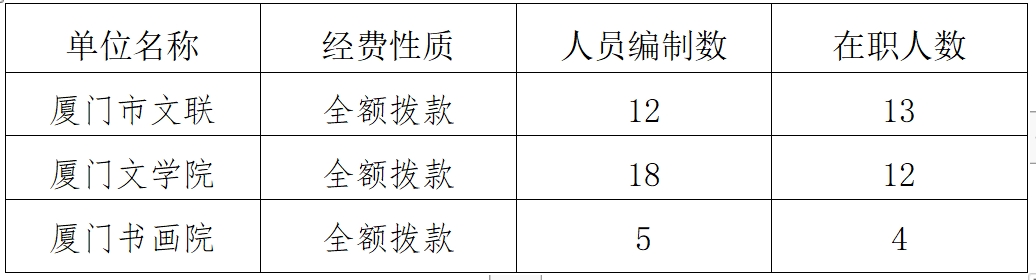 一、部门主要职责 鸿发国际的主要职责是: (一)厦门市文联机关: 1.党和政府联系文艺家的桥梁和纽带;2.致力于繁荣我市社会主义文学艺术事业;3.开展文学艺术交流,对团体会员(各文艺协会)开展联络、协调、服务工作,通过组织学习、深入生活、文艺创作、理论研究、学术讨论、文艺评奖、书刊出版、影视制作、人才培训、对外交流等项工作,对团体会员进行业务指导;4.负责我市文艺类重点人才引进的评鉴工作。 (二)厦门文学院: 1.组织文学创作;2.开展文学批评、理论研讨、培训及培养本地文学人才;3.举办文学活动,编辑、出版《厦门文学》刊物及其他书籍;4.开展海内外,尤其是对台文学交流。 (三)厦门书画院: 1.开展书画创作、研究、培训;2.组织书画艺术交流;3.承办书画展览、笔会、研讨会及艺术品收藏等。 二、部门预算单位基本情况 厦门市文学艺术界联合会包括3个机关行政处室及2个基层预算单位,其中:列入2023年部门预算编制范围的单位详细情况见下表: |