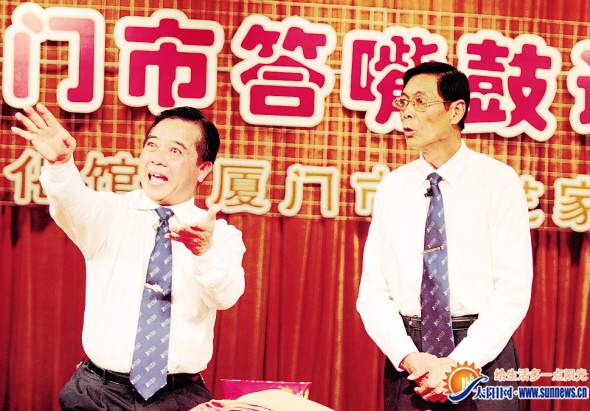 有文章记载,厦门答嘴鼓是从最早的市声、“念四句”、“拍嘴鼓”、“方言说书”等民间口头文学逐渐发展而来。比如,进新娘房要念“双脚踏入来(lai),交椅两边排(pai),新娘是天使(sai),囝婿状元才(zai)”,诸如此类讲究押韵,类似顺口溜的“念四句”。显然易见,娴熟的闽南语是答嘴鼓创作与表演的重要基础;这对刚从北方来厦定居的陈阿姨来说太难了。不过,陈阿姨兴致勃勃,“很多年轻人也听不懂英文啊,可他们照样爱听老外的摇滚说唱”。据说,她欣赏的是答嘴鼓的韵味与音乐美。