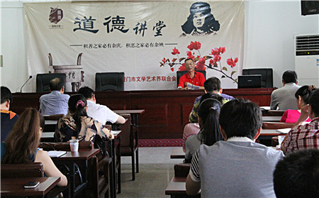 为培育和践行社会主义核心价值观,提升干部职工的思想道德素养, 7月16日上午,市文联举行了刘良镇先进事迹报告会。刘良镇同志系同安区汀溪镇文化站站长,在基层文化站工作了36年。多年来,他致力于乡村文化园的建设和非物质文化遗产的保护,为基层文化事业的发展做出了突出贡献。先后被评为:福建省先进文化站站长、厦门市文化系统先进工作者、厦门市优秀社会体育指导员、厦门市第三次全国文物普查先进工作者、厦门市“最美乡村文化员”、入选福建省的“好人榜”等荣誉。他的事迹在福建日报、厦门日报等多家媒体广为刊载、宣传。