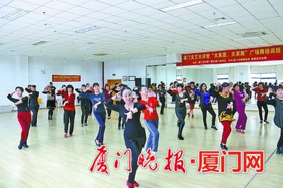 本报讯(文/图 记者 龚小莞)“我从北方来到南方,来到了侨乡情暖心扉,美丽的城市令人心醉,美丽的厦门有我集美……”朗朗上口、通俗易懂的歌词,动感激情的旋律。这是专为集美社区居民编排的广场舞《集美真水》。昨天下午,来自各社区的60多名文艺骨干参加了培训,她们将把这支舞带到社区。