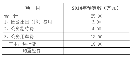 2014年预算安排18.90万元。主要用于公务用车燃油、维修、保险、停车等方面支出。