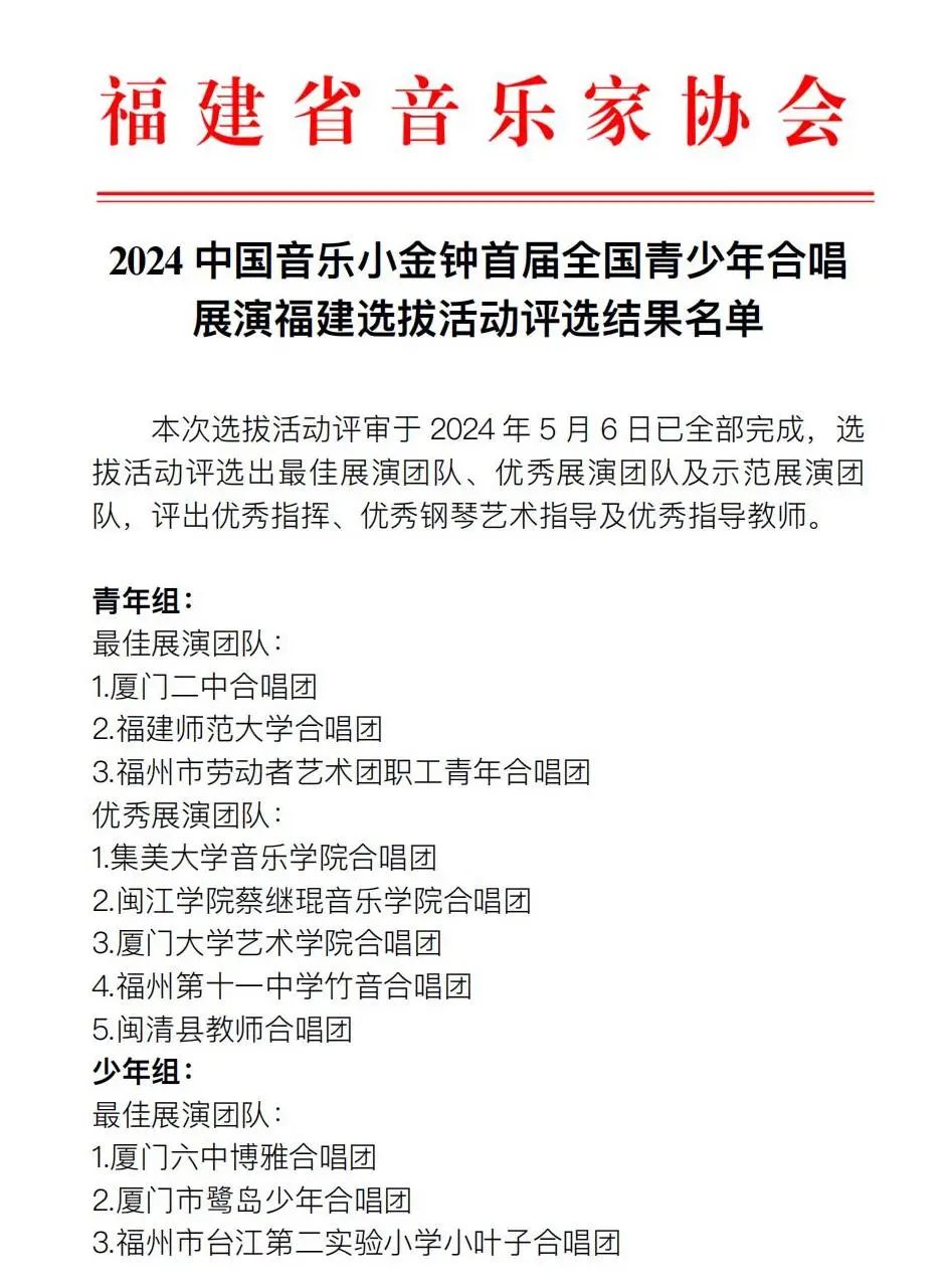 首届全国青少年合唱展演福建选拔活动