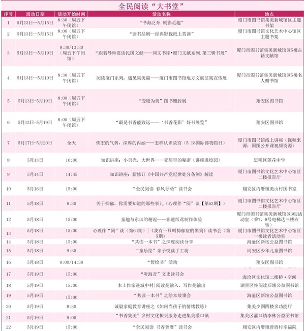 方式:具体讲座信息,请关注“厦门市图书馆”公众号进行了解。