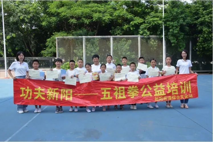 ▲邱靖娜(居中者)与“功夫新阳——五祖拳公益培训”学员合影(邱靖娜供图)