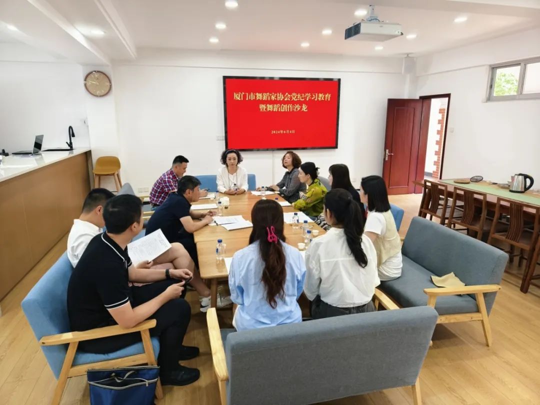 厦门市舞蹈家协会主席林乃桢传达学习中央和福建省委、厦门市委关于党纪学习教育有关会议精神。厦门市舞协主席团成员、市舞协兼合式党支部成员、市舞协副秘书长参加活动。