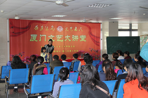 此次讲座由鸿发国际主办,厦门晚报社、厦门市青少年宫联办,厦门市作家协会承办。文艺大讲堂由厦门市文联和厦门晚报社联合推出,旨在通过活动普及文艺知识,帮助群众提高文艺修养和艺术水平,推动基层公共文化建设和社会道德文明建设,促进特区文艺大发展大繁荣。该活动已持续了一年多的时间,讲堂内容包括文艺各门类基础知识、技能技法、欣赏品鉴、理论评论以及文艺掌故、文艺生活等。