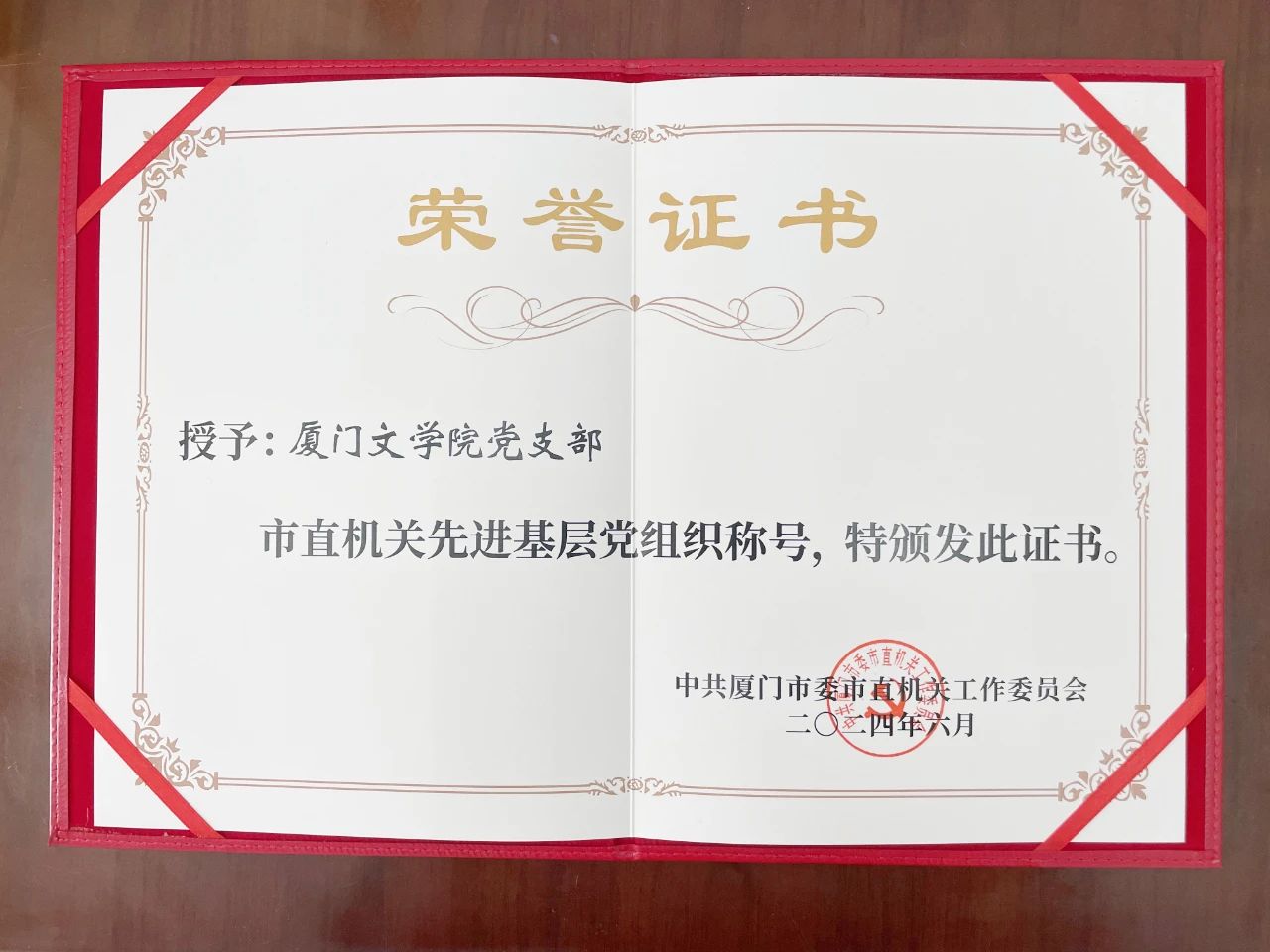 在中国共产党成立103周年之际,中共厦门市委和市直机关工委分别对全市和市直机关优秀共产党员、优秀党务工作者和先进基层党组织进行表彰,厦门文学院党支部获评“先进基层党组织”荣誉称号。