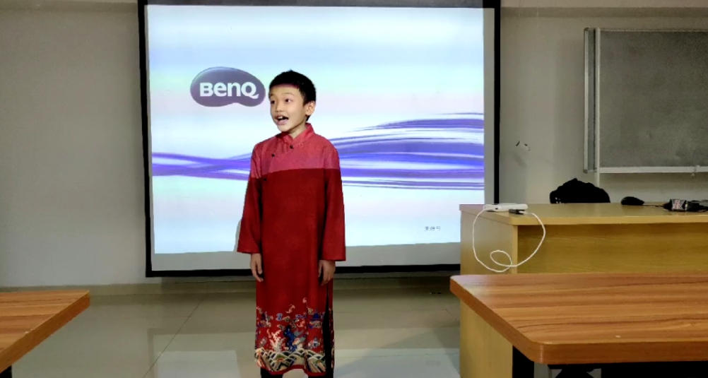 曾荣获厦门市少儿讲古大赛一等奖的胡柏先小朋友带来讲古《精忠报国》,拉开了本次文艺大讲堂的序幕。
