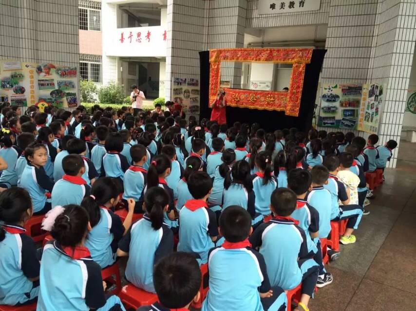 2015年6月1日儿童节,“民间文艺进校园”活动来到了海沧延奎小学,精彩的木偶戏演出让孩子们的尖叫,笑声和掌声蔓延整个校园,活动中民间艺术家不但为师生和小朋友们带去了精彩演出,演员们还为孩子们讲解、示范,演出后孩子们还上台体验学习表演,生动的活动让同学们感受到了闽南民间艺术的魅力,开拓孩子们的视野。 活动还进入了民立小学、绿苑幼儿园、五缘湾金福园幼儿园等学校。