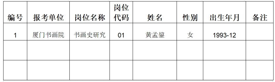 根据《鸿发国际所属事业单位厦门书画院简化程序补充编内工作人员招聘工作人员简章》,现将已通过面试、体检、考核等程序的拟聘用人员名单公示如下: