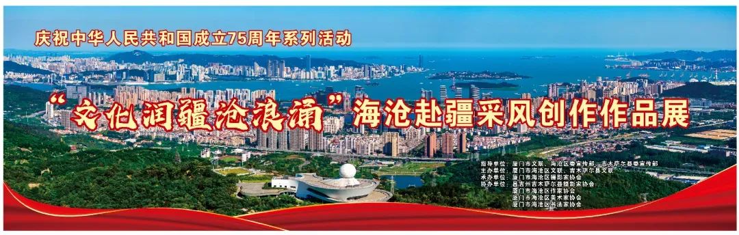 “文化润疆沧浪涌”庆祝新中国成立75周年暨海沧赴疆采风创作作品展于9月9日至9月16日展出2024年7月,由厦门市文联带队海沧区组织文艺家骨干深入吉木萨尔县开展采风创作交流,推动“文化润疆”走深走实。