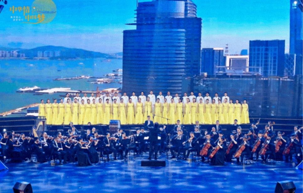 当晚,2024年“中华情·中国梦”中秋文艺晚会在厦门闽南大戏院举行。晚会分为“同圆”“同心”“同行”3个篇章,以交响音乐会为主要形式,通过融合闽南语歌曲、厦门特色元素、民间艺术等进行跨界串联和创新呈现。来自海峡两岸的老、中、青三代艺术家同台献艺,以演奏、歌曲、朗诵等多种形式共同呈现了一场艺术盛宴。