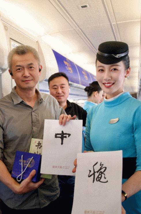 此次主题航班,结合国家级非物质文化遗产惠和影雕定制了主题互动奖品,选用歌曲《春风拂过筼筜湖》作为“天际悦读”特别版氛围朗读广播。乘务员随后邀请旅客一起领读歌词,动情地描述筼筜湖的变化,让乘客置身其中,一同感受生态蝶变、家国情怀。值得一提的是,今年书法“国展”——全国第十三届书法篆刻展览(部分作品)首次来闽,结合“中华情·中国梦”主题,现场开展书法科普、答题互动,现场氛围热烈。