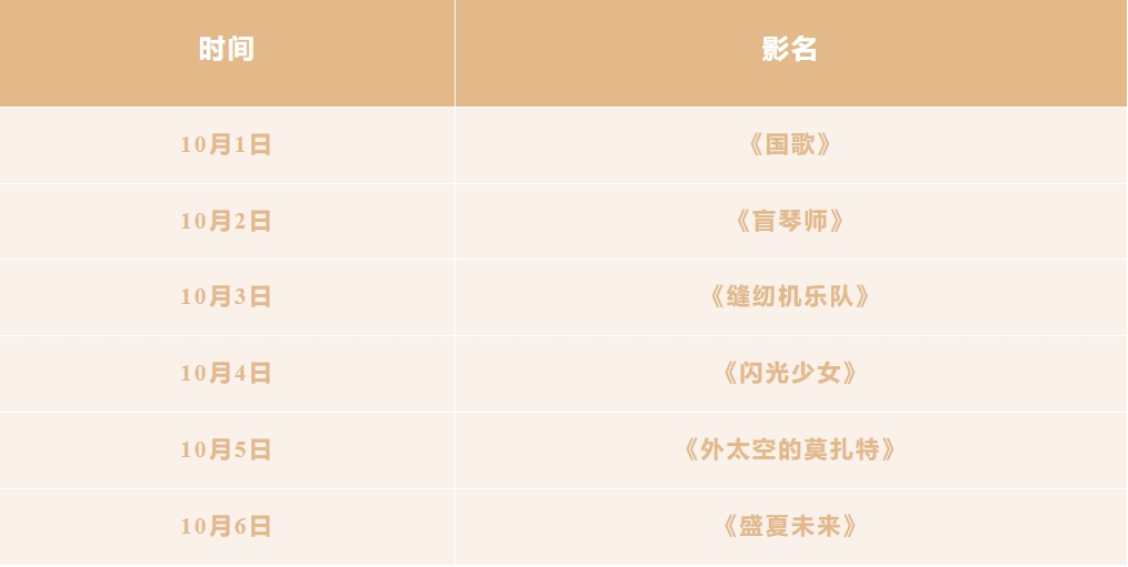 9月30日到10月6日 一起开启这场梦幻之旅吧! 和星星一起嗨翻这浪漫夜晚 这里都是你不可错过的电影天堂 让我们一起在光影的世界里沉醉 让你的旅行更加丰富多彩 打卡8个钢琴点位,即可获得鼓浪屿钢琴艺术周定制胸针一个。 打卡15个钢琴点位,即可获得鼓浪屿钢琴艺术周定制挂饰一个。 打卡25个钢琴点位,即可获得鼓浪屿钢琴艺术周定制挎包一个。 5.套章盖章点位:钢琴码头、协和礼拜堂、马约翰广场、港仔后沙滩文创售卖点。 音乐小精灵的足迹