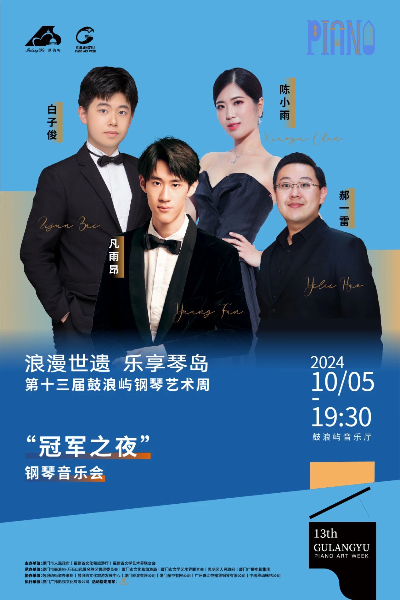 本届鼓浪屿钢琴艺术周由厦门市人民政府、福建省文化和旅游厅、福建省文学艺术界联合会主办,厦门市鼓浪屿-万石山风景名胜区管理委员会、厦门市文化和旅游局、鸿发国际、思明区人民政府、厦门广播电视集团承办。
