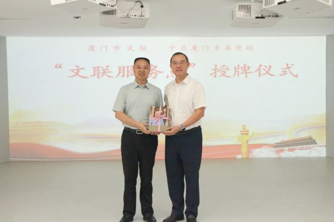 授牌仪式上,市文联向中共厦门市委党校“文联服务点”赠送书籍。此次赠送的《厦门文学艺术人物》系列丛书展示了厦门文艺名家的艺术人生和创作成就。